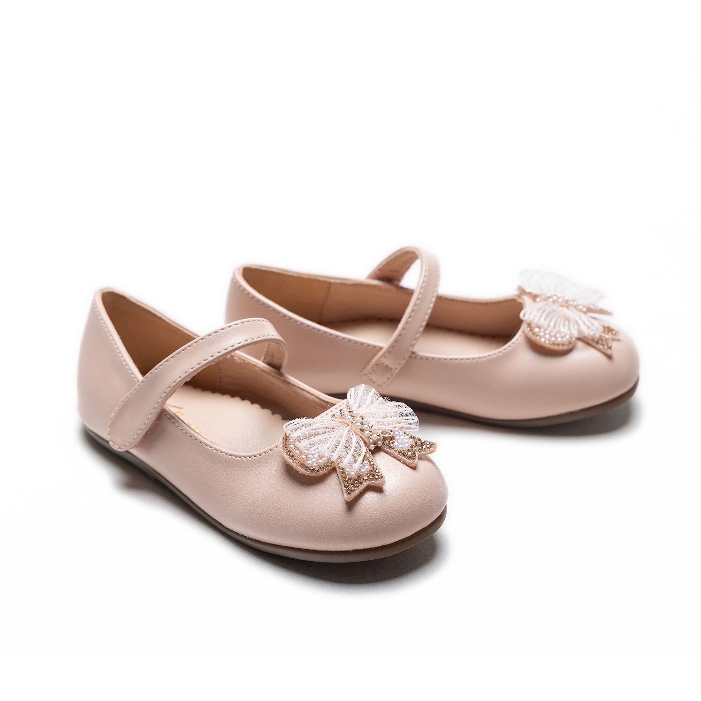 The Pink Charlotte Ribbon Flats by Tulleen are a dreamy addition to any young girl's wardrobe. Designed in a soft pink satin, these flats are accented with a large embossed bow on the vamp, adding a signature touch of femininity.