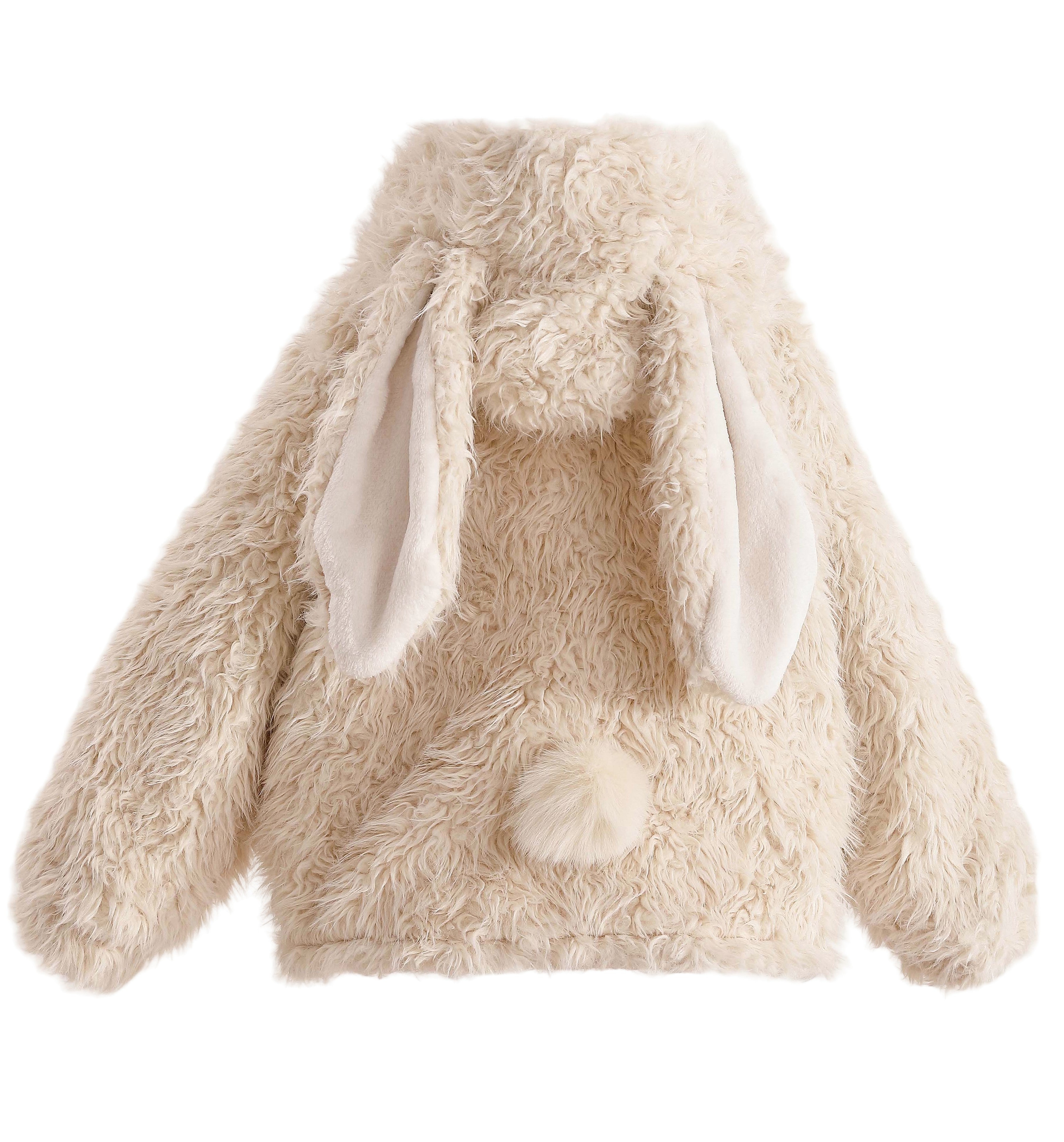 Cream Bunny-Eared Fuzzy Jacket