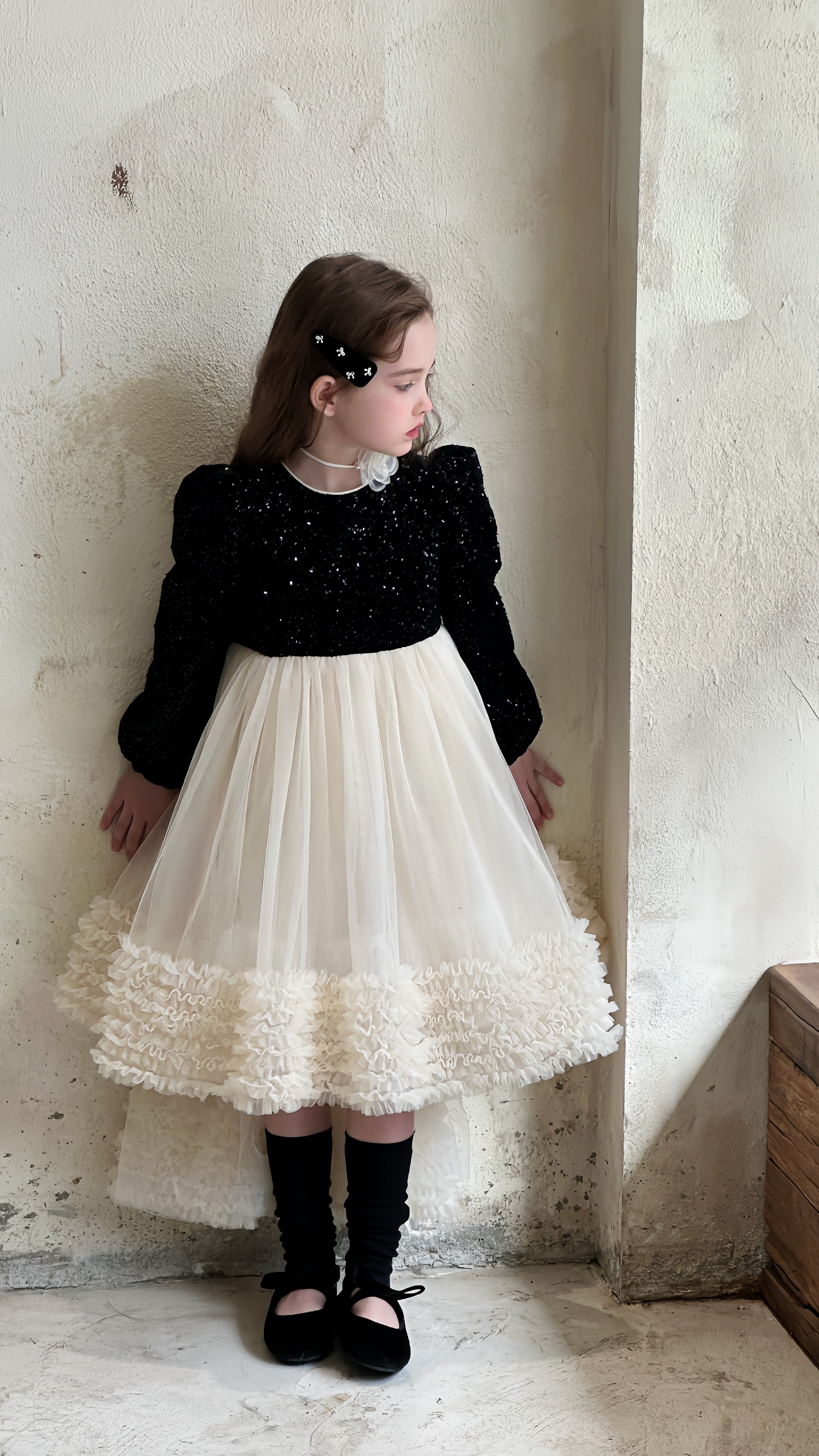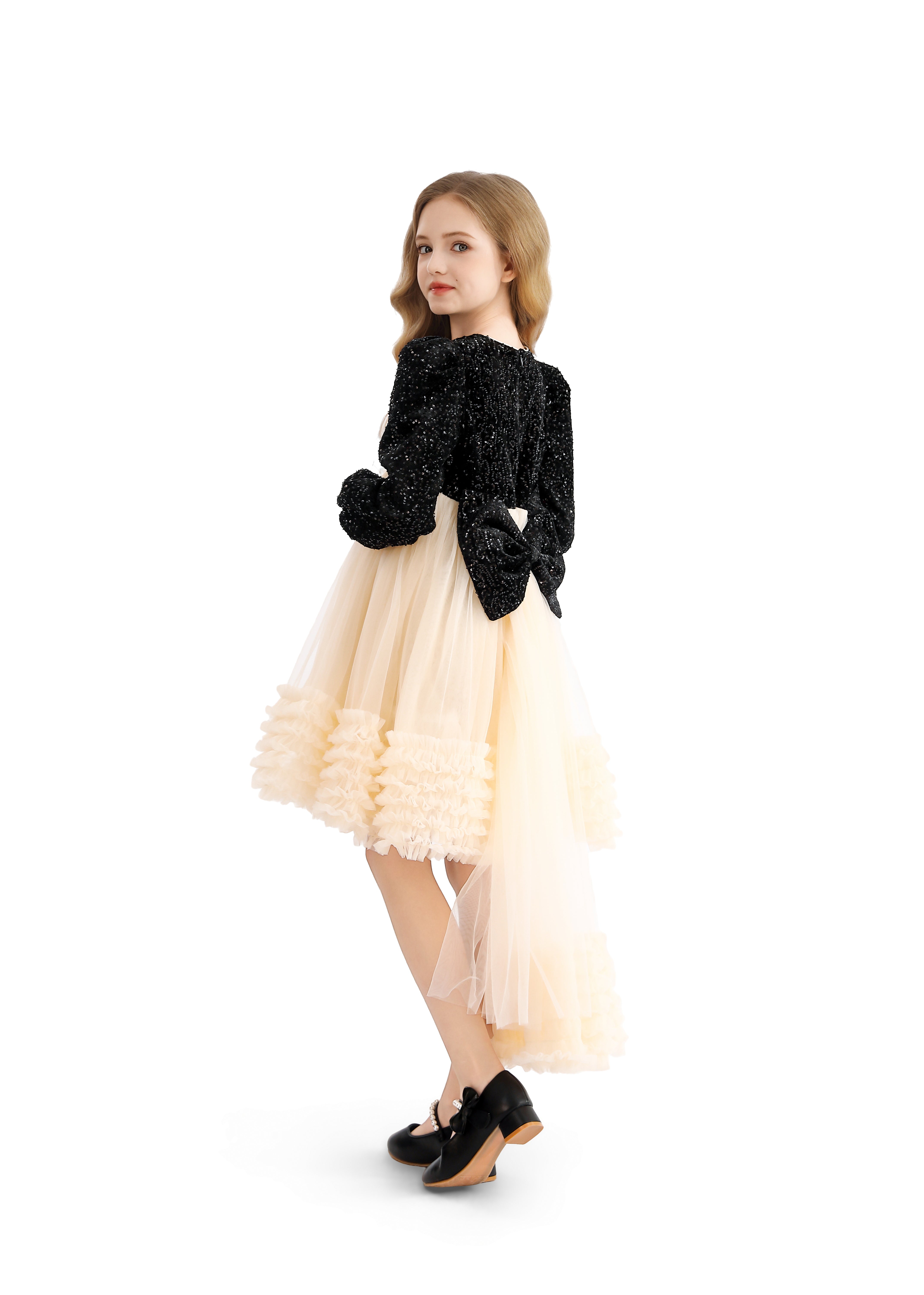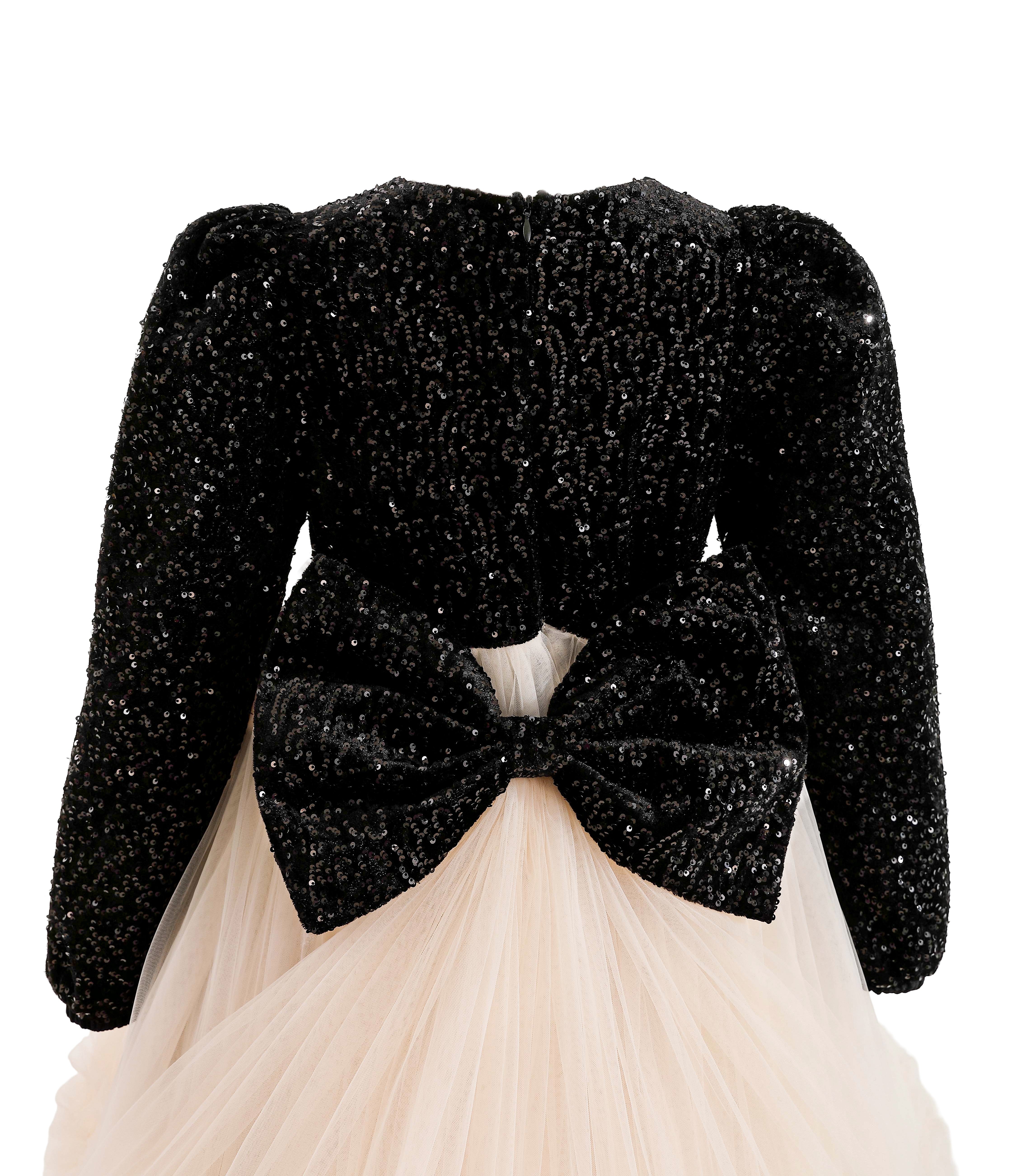 Black Glitter Bow-Back Tulle Gown