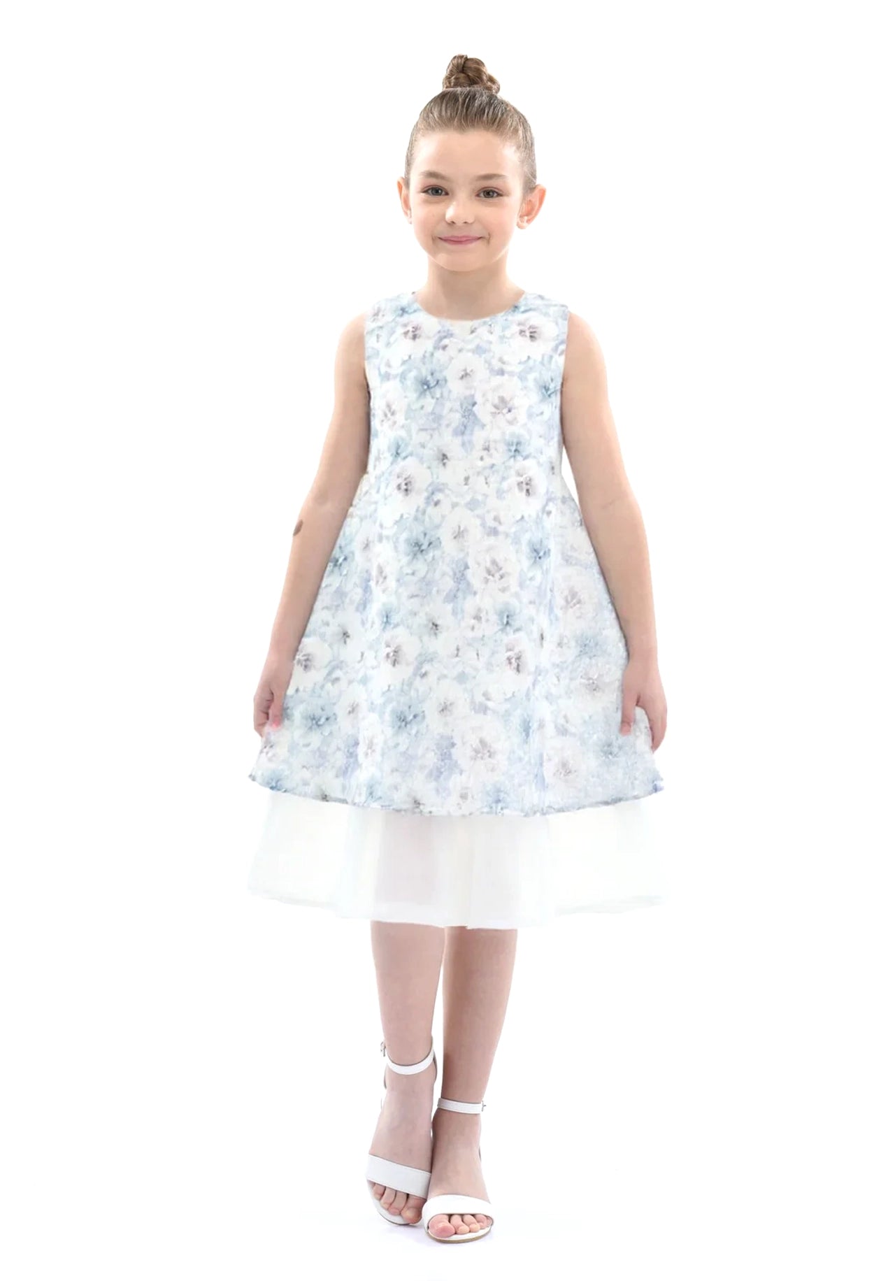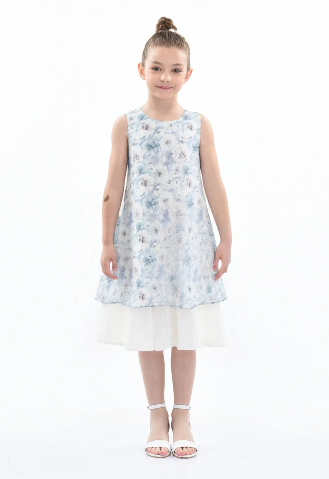 Soft, elegant, and full of charm, the Blue Floral Sleeveless Layered Dress is a beautiful choice for spring and summer occasions. It features an all-over watercolor floral print in soothing shades of blue and lilac. This sleeveless design adds a delicate, feminine touch to your girl’s wardrobe.