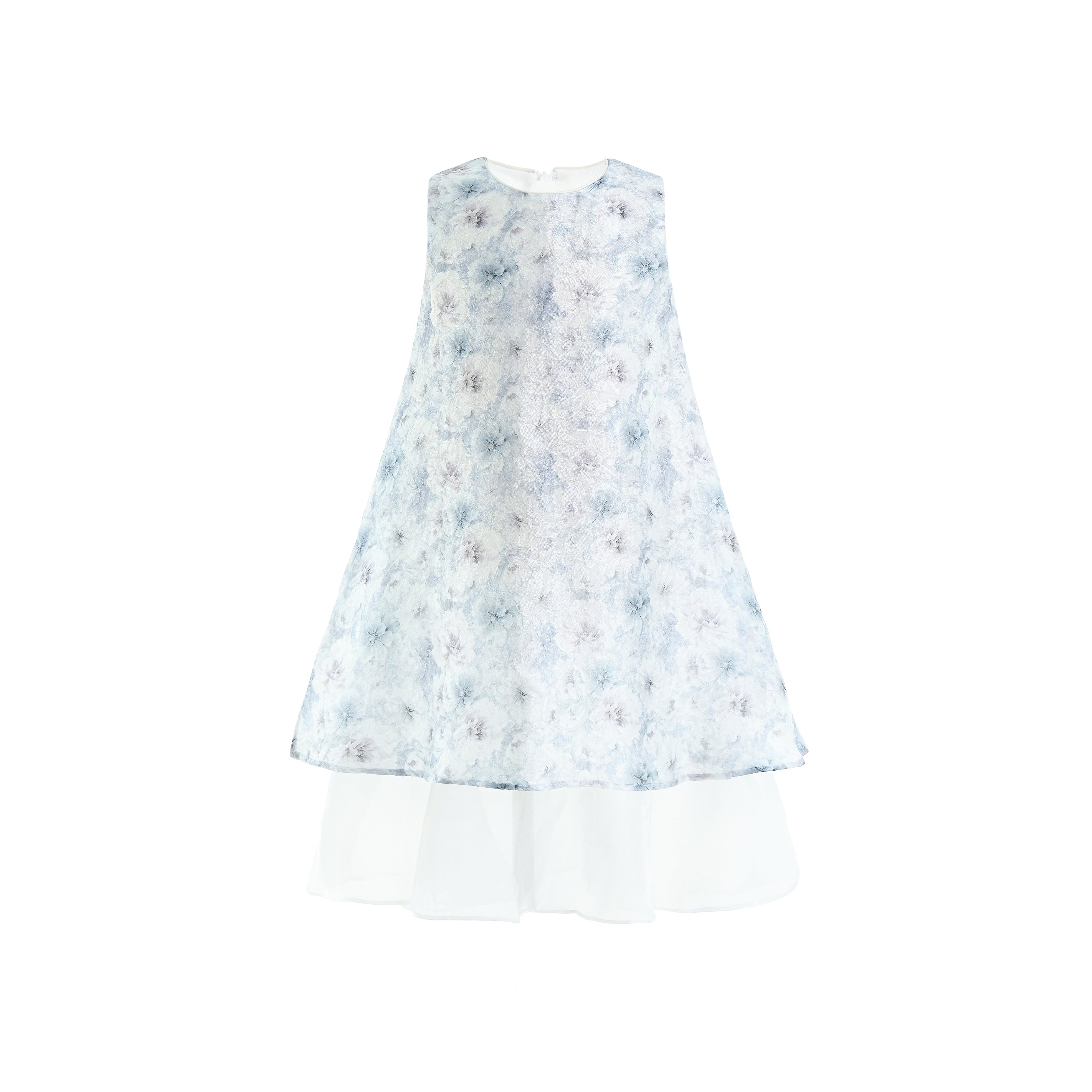 The Blue Floral Layered Dress has an A-line shape that allows easy movement. A round neckline gives it a classic, timeless look. This detail makes the dress feel elevated without being overly formal—perfect for any daytime celebration.