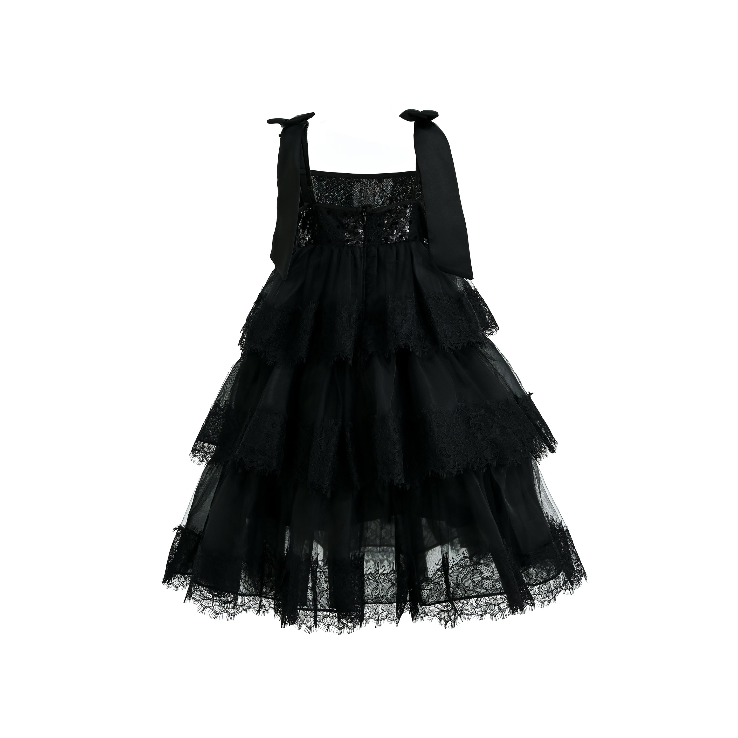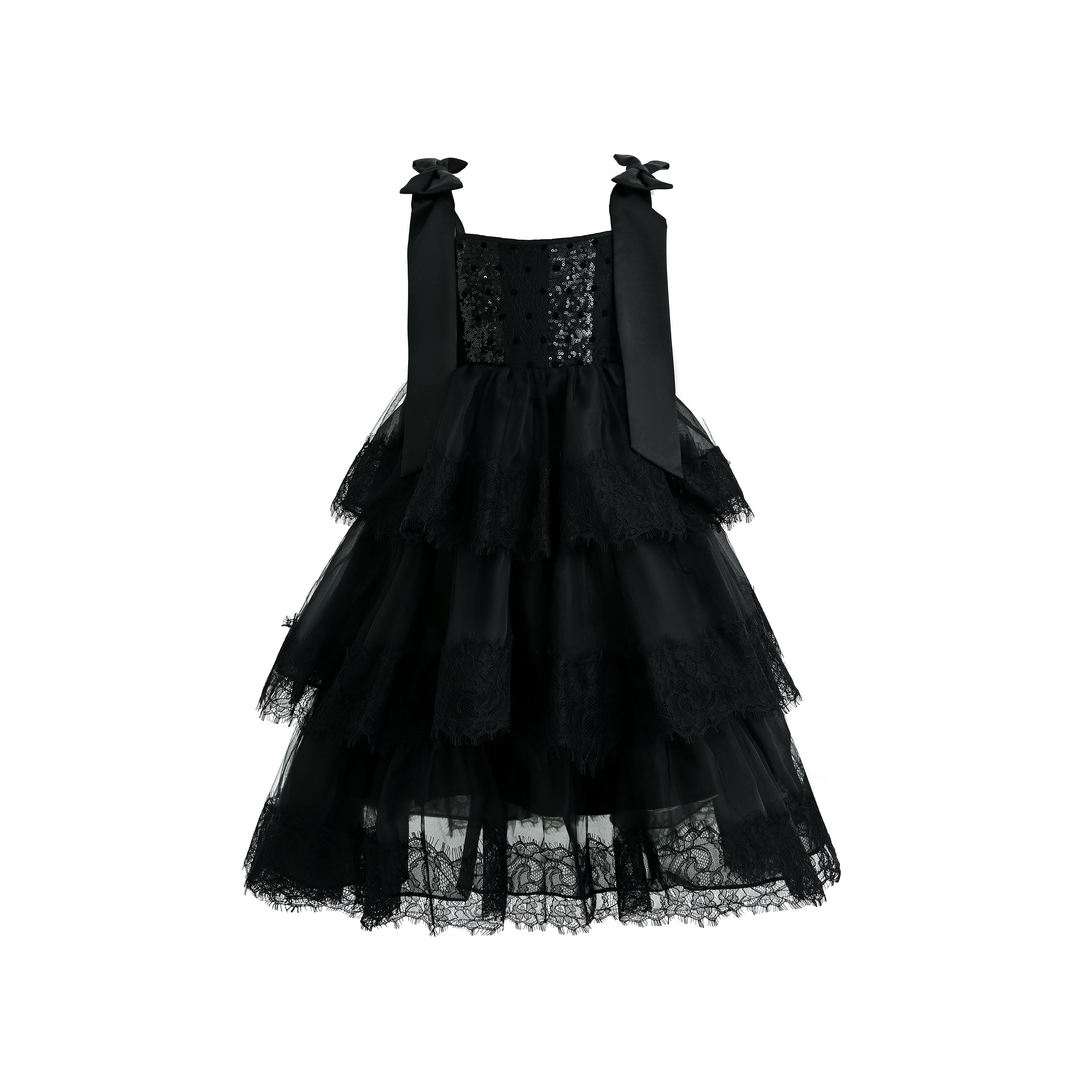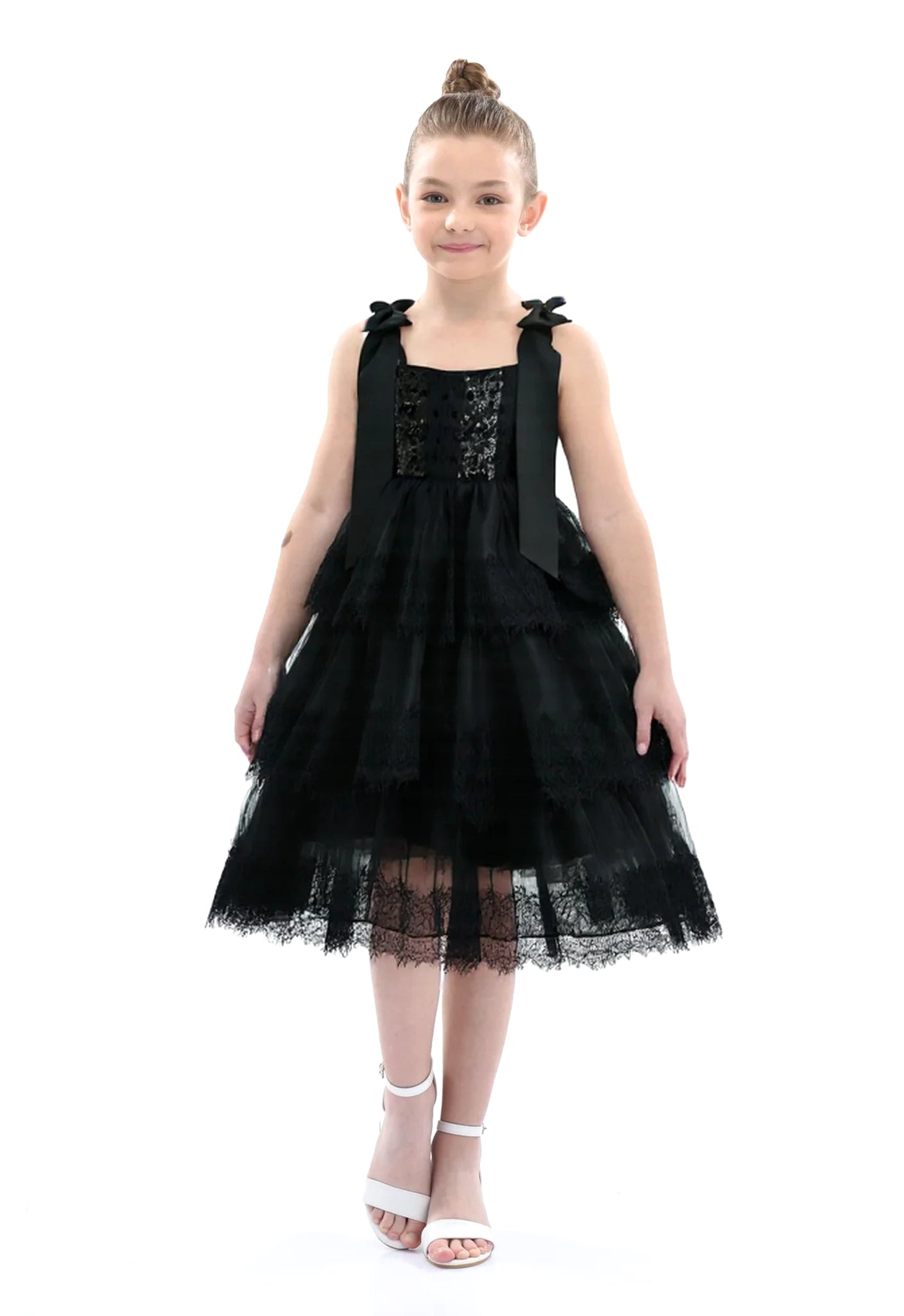 The black ruffle sleeveless bow dress for kids is a stylish and comfortable choice for your child. This dress features delicate ruffles along the sleeveless shoulders, adding a playful and elegant touch. A cute bow at the waist creates a lovely detail that makes this dress stand out. Made from soft, breathable fabric, the black ruffle sleeveless bow dress for kids keeps your little one cool and comfortable all day.