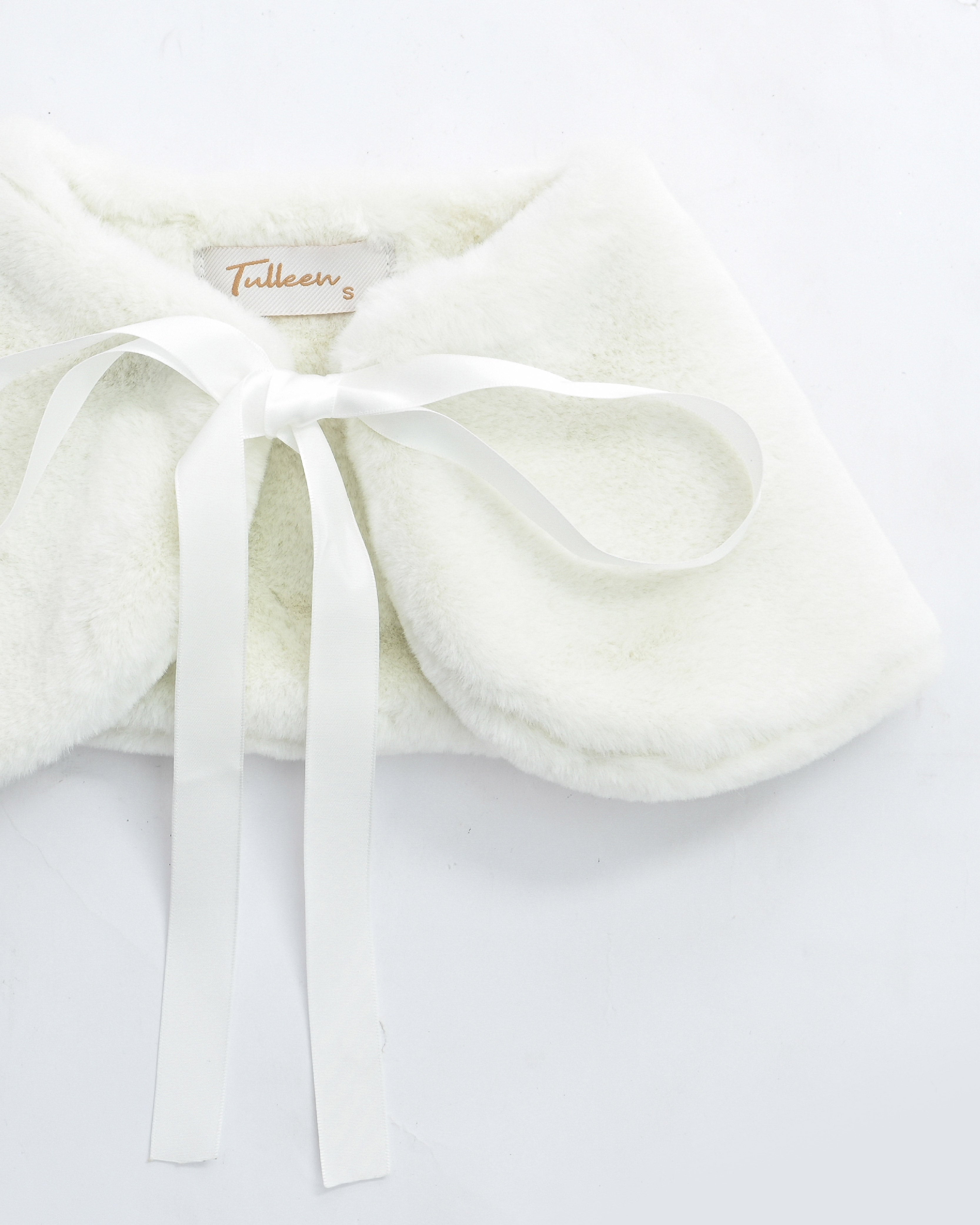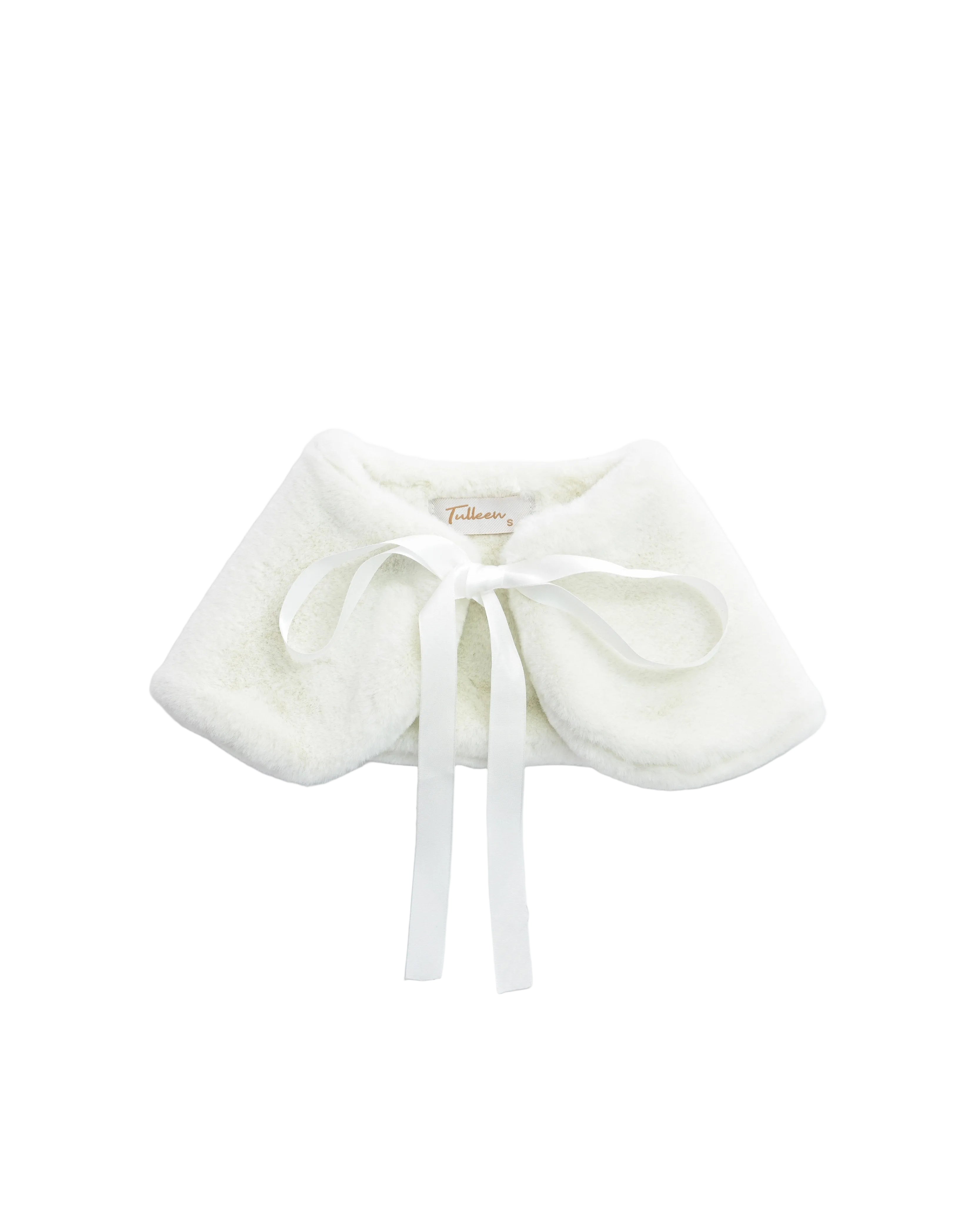 Ivory Ribbon-Tie Faux Fur Collar