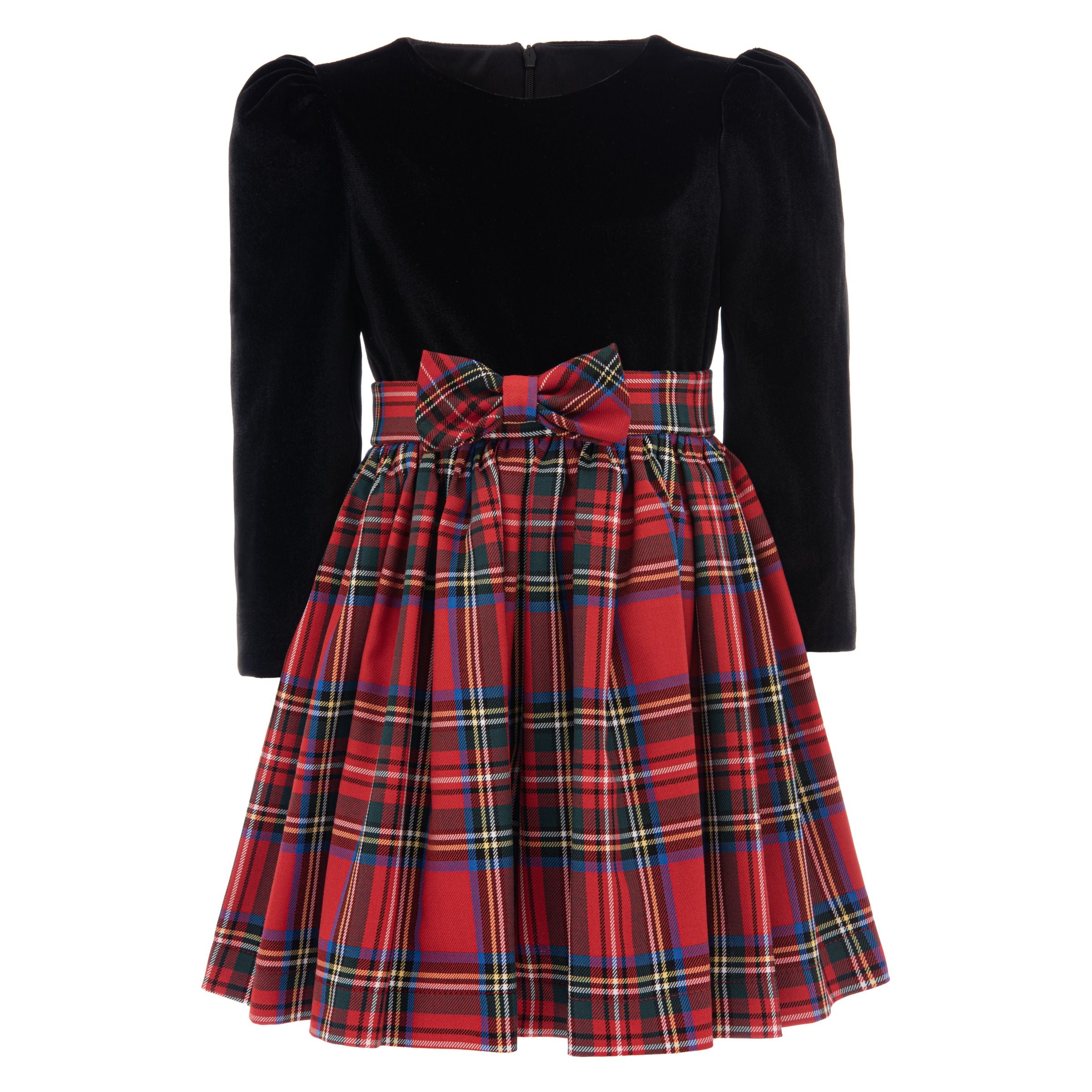 Designed to be dry cleaned only, this dress maintains its pristine and luxurious appearance over time. Overall, the Black Plaid Velvet Bow Dress combines elegance, comfort, and dramatic design elements, making it a perfect addition to any baby girl's wardrobe. This dress ensures your child looks and feels special at any event.